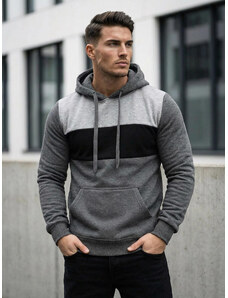 Vīriešu džemperis ar kapuci pelēks OZONEE JS/2008Z