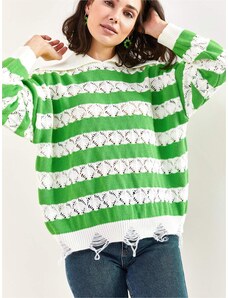 Sublevel Džemperis tumši zaļa / sarkans / bordo / balts